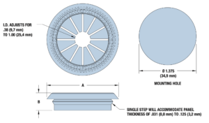 Mounting hole diameter range: .500” (12,7 mm) to 3.000˝ (76,2 mm)