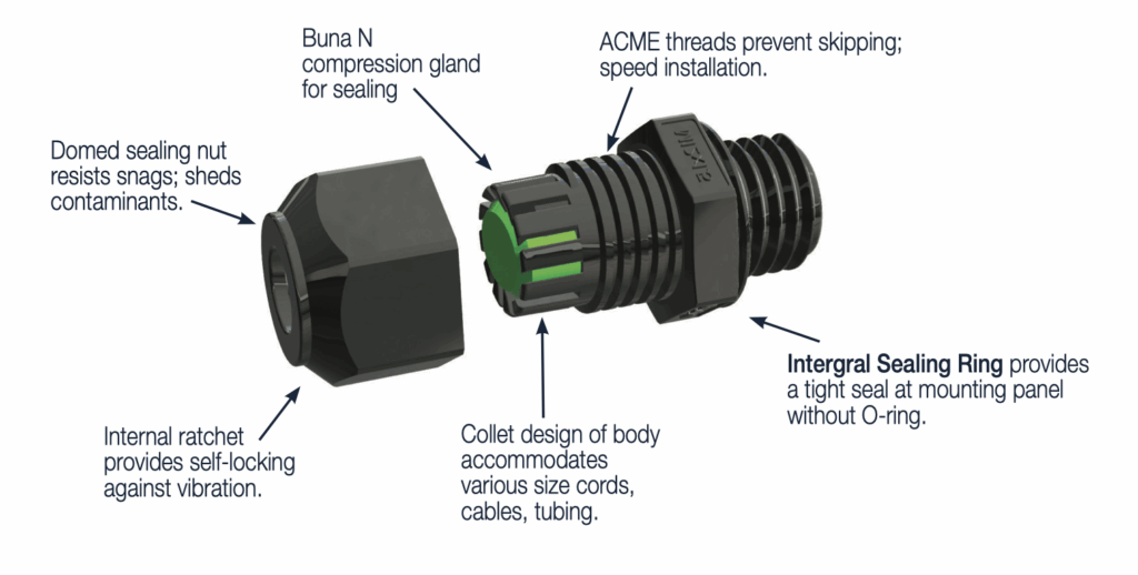 These cordgrips are more than just cable glands — they’re dual-function protection systems. Initially used as plugs, they seal off your enclosures from dust, debris, moisture, and other contaminants during manufacturing or field sites.